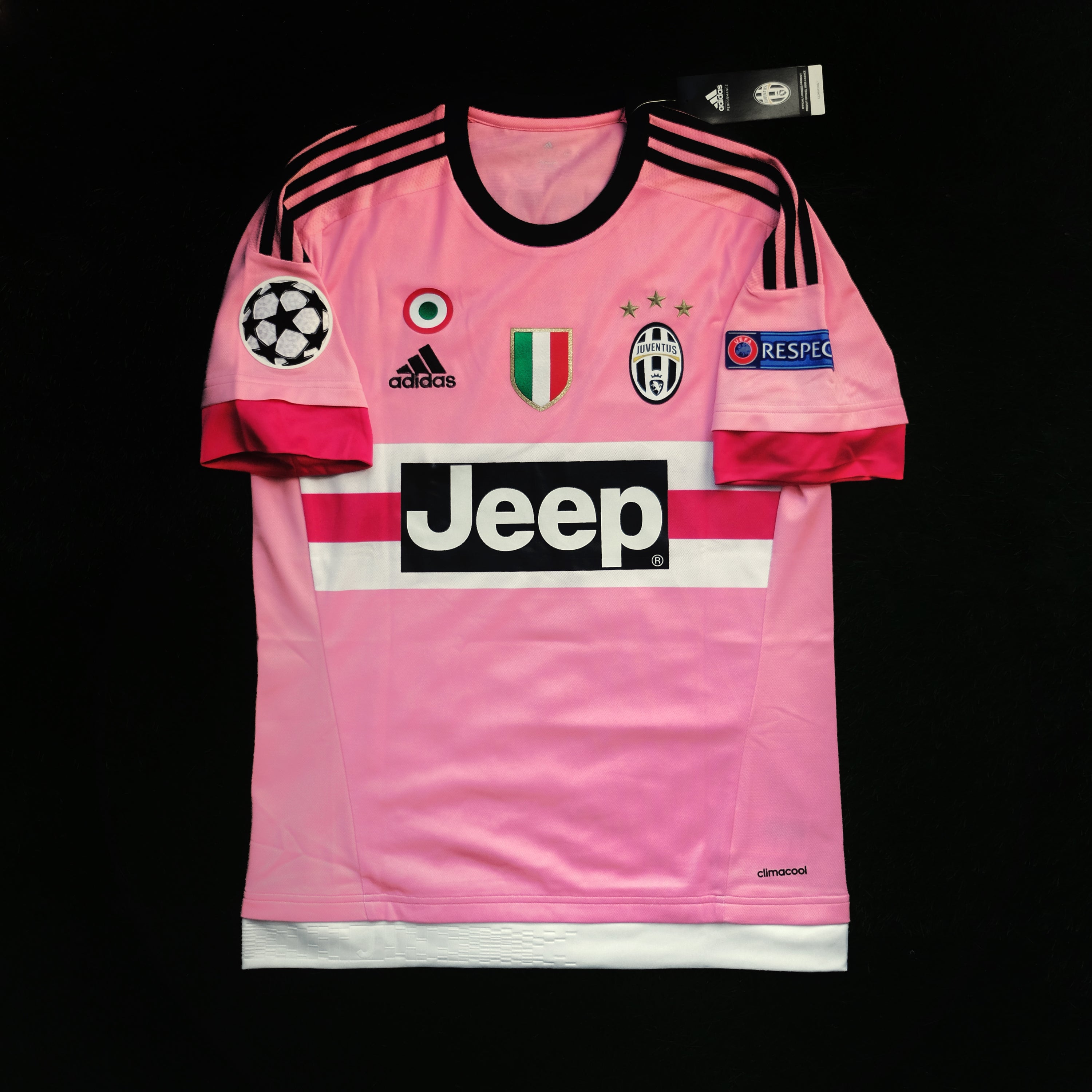 By 2015, Juventus were already serial winners, but their pink away shirt did something even trophies couldn’t: it crossed over into mainstream pop culture. The design itself is simple but bold—soft pink base, black chest band, minimalist details—but what truly changed its trajectory was a single co-sign: Drake. When he appeared in the Pogba version of the kit, search interest and demand reportedly exploded, turning a Serie A away shirt into a fashion statement on streets and in music culture far from Turin.